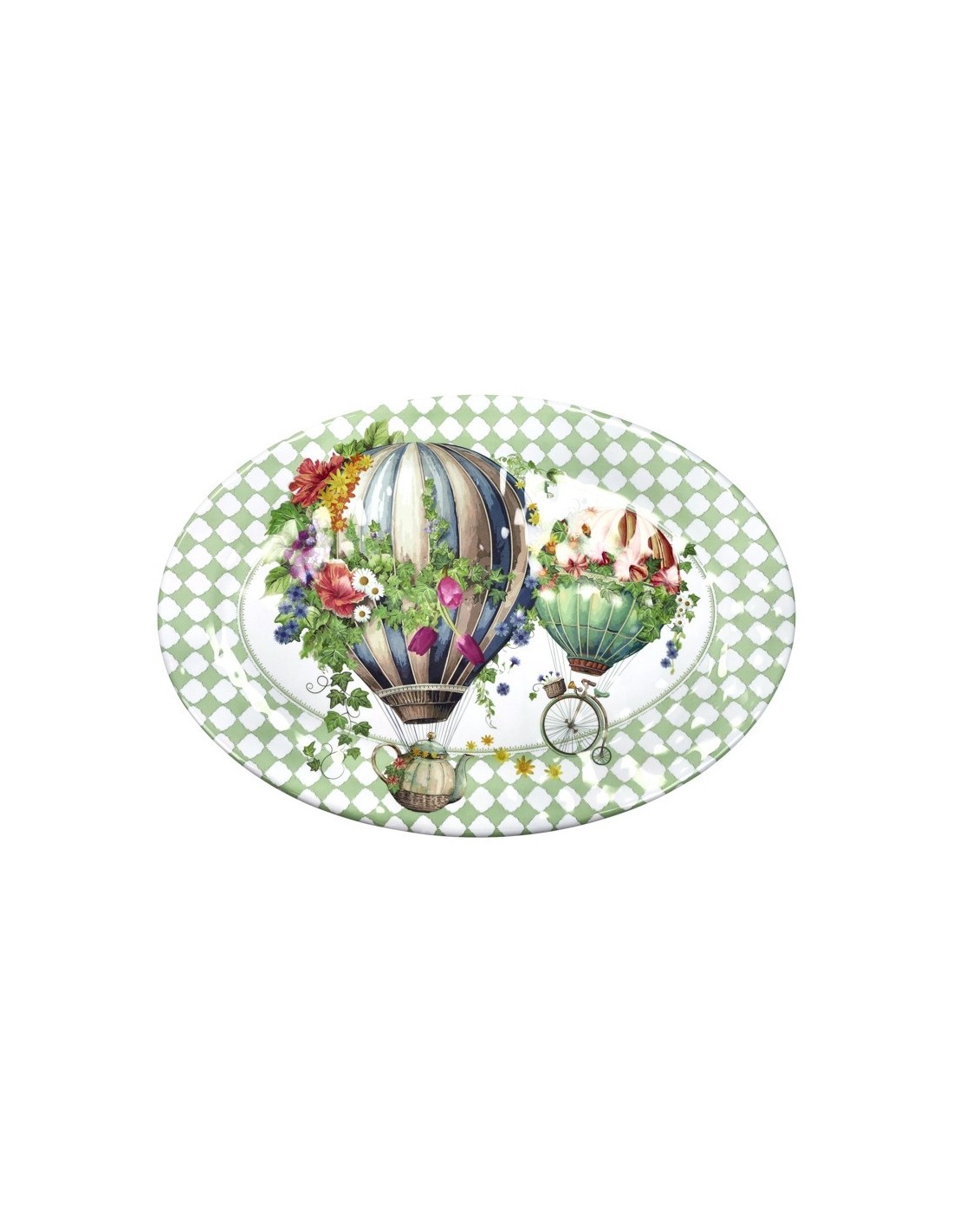 Vassoio ovale in melamina, in stile Wonderland. La forma allungata e la superficie ampia lo rendono adatto per servire pietanze, dolci o assortimenti da tavola.La melamina assicura leggerezza, resistenza agli urti e facilità di utilizzo, ideale per l’uso quotidiano.